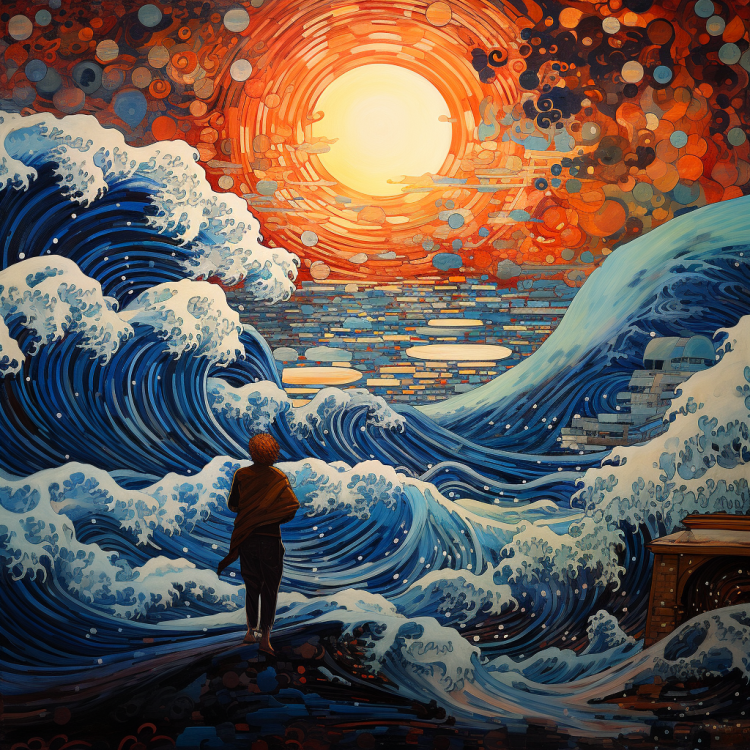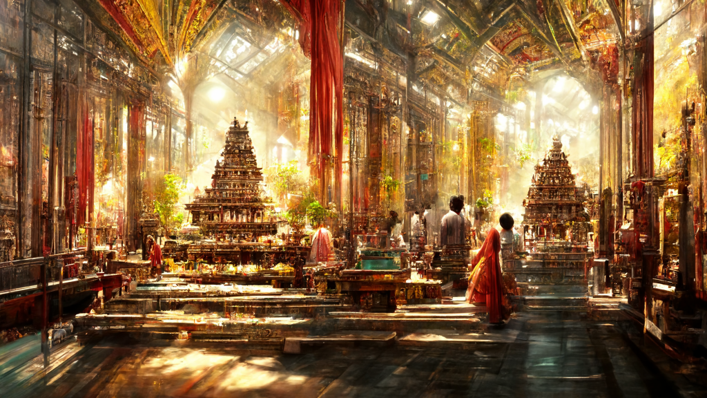 The first few images in the set below shows a few religiously inspired imagery, primarily combining Hindu and Japanese styles (heavily leaning towards Hokusai’s art style). Then, there are a few Buddhist inspired images, mostly of monks and sculptures. Following that it is mostly random generations that looked better than the rest. At this point, it is tough to create truly bad artwork on Midjourney.