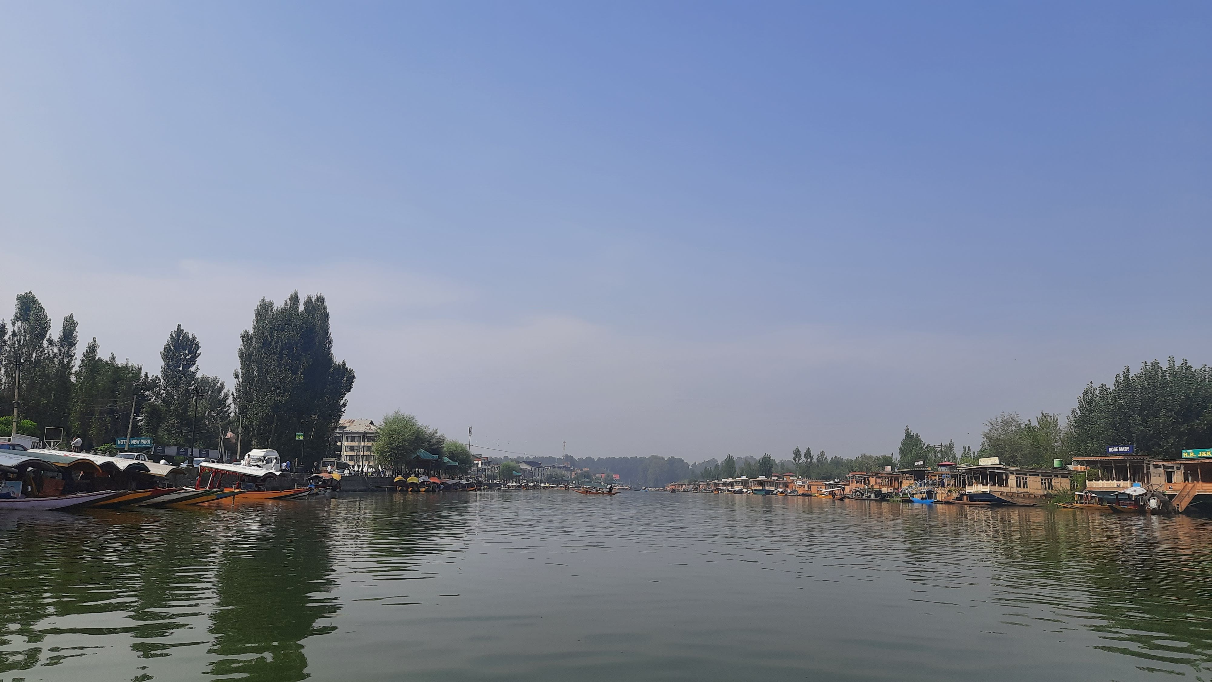 Dal lake is a huge water body right in the middle of Srinagar. From the map, I saw two other large lakes, but none as big as Dal. To reach Dal lake from the airport, I had to cross the main city of Srinagar, which I observed is along the South East of Dal lake. There was scattered military presence throughout the journey, with the frequency increasing along the Boulevard road (road along the Eastern periphery of the lake).