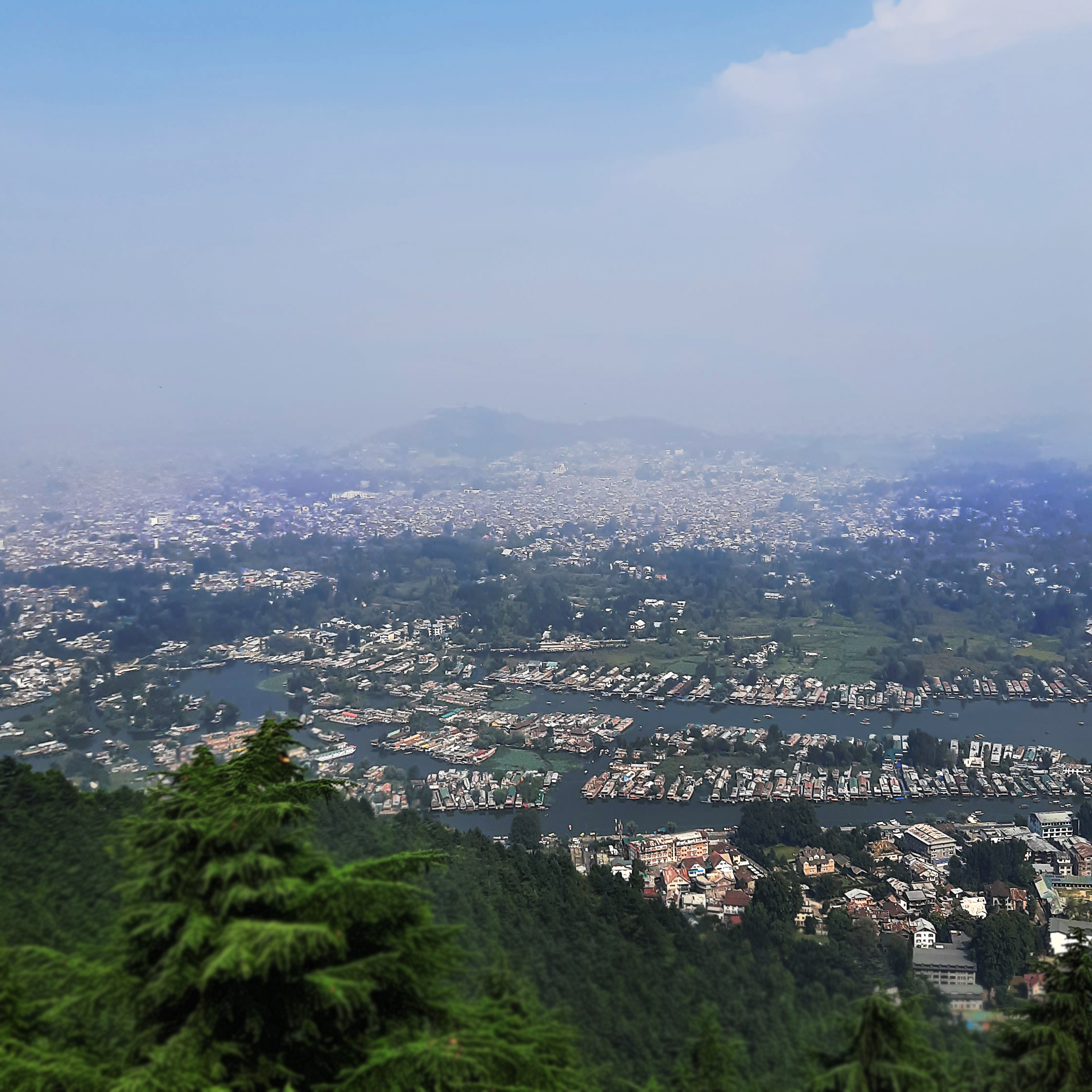The houseboats have taken over the entire peninsula like portion of the southern end. When seen from the Shankaracharya temple, the portion looks like a large parking lot.