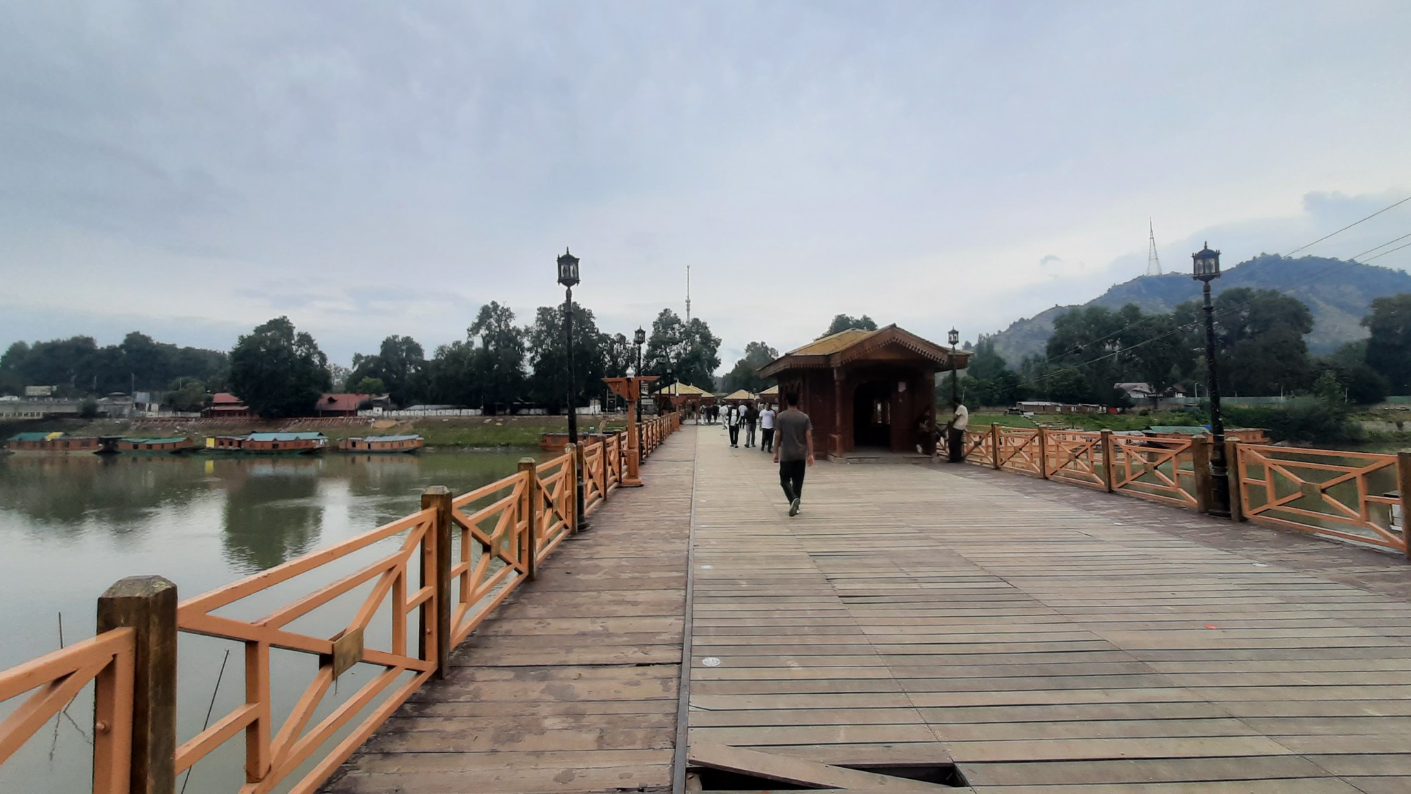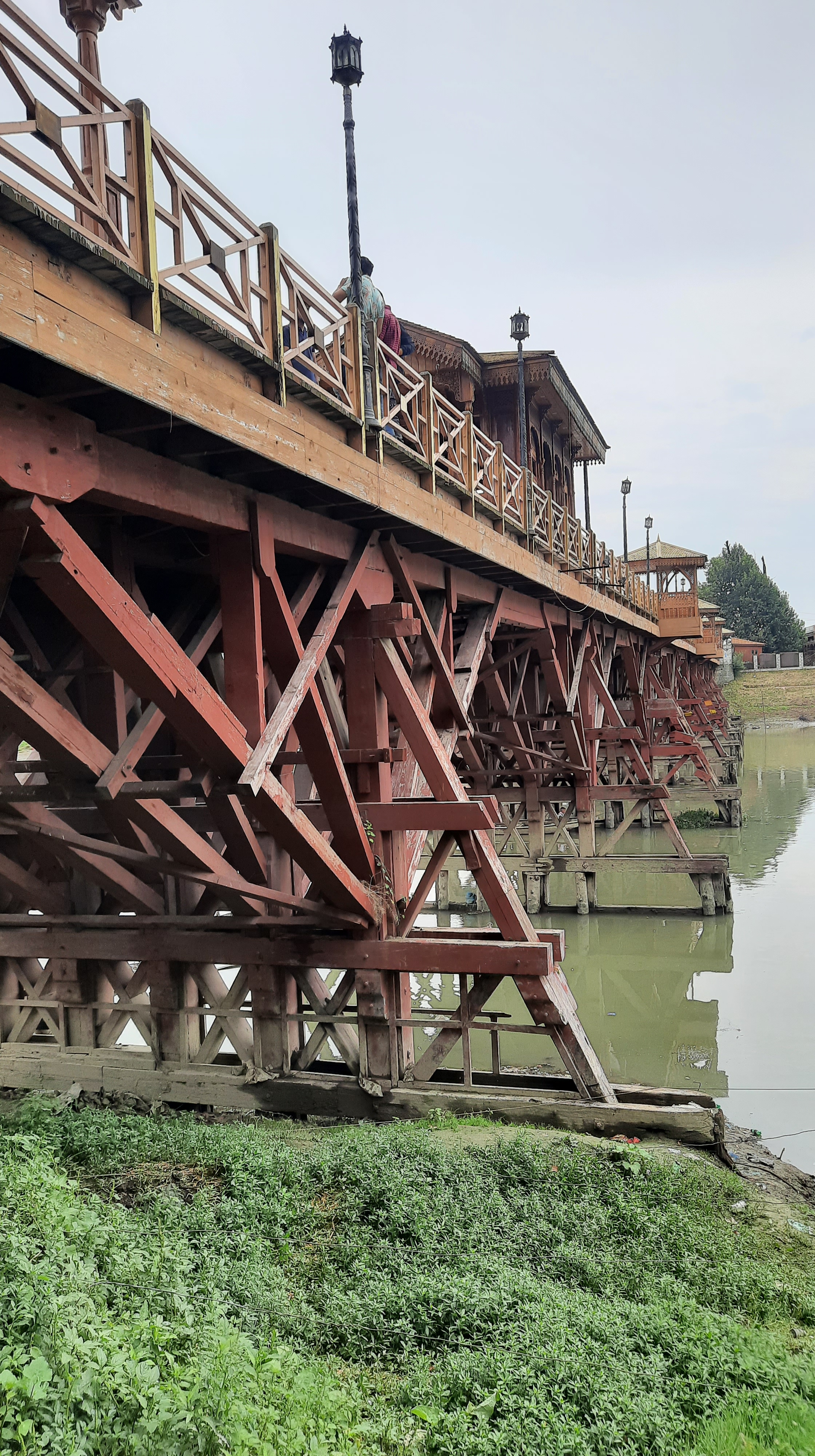 A pedestrian wooden bridge spanning across the Jhelum.