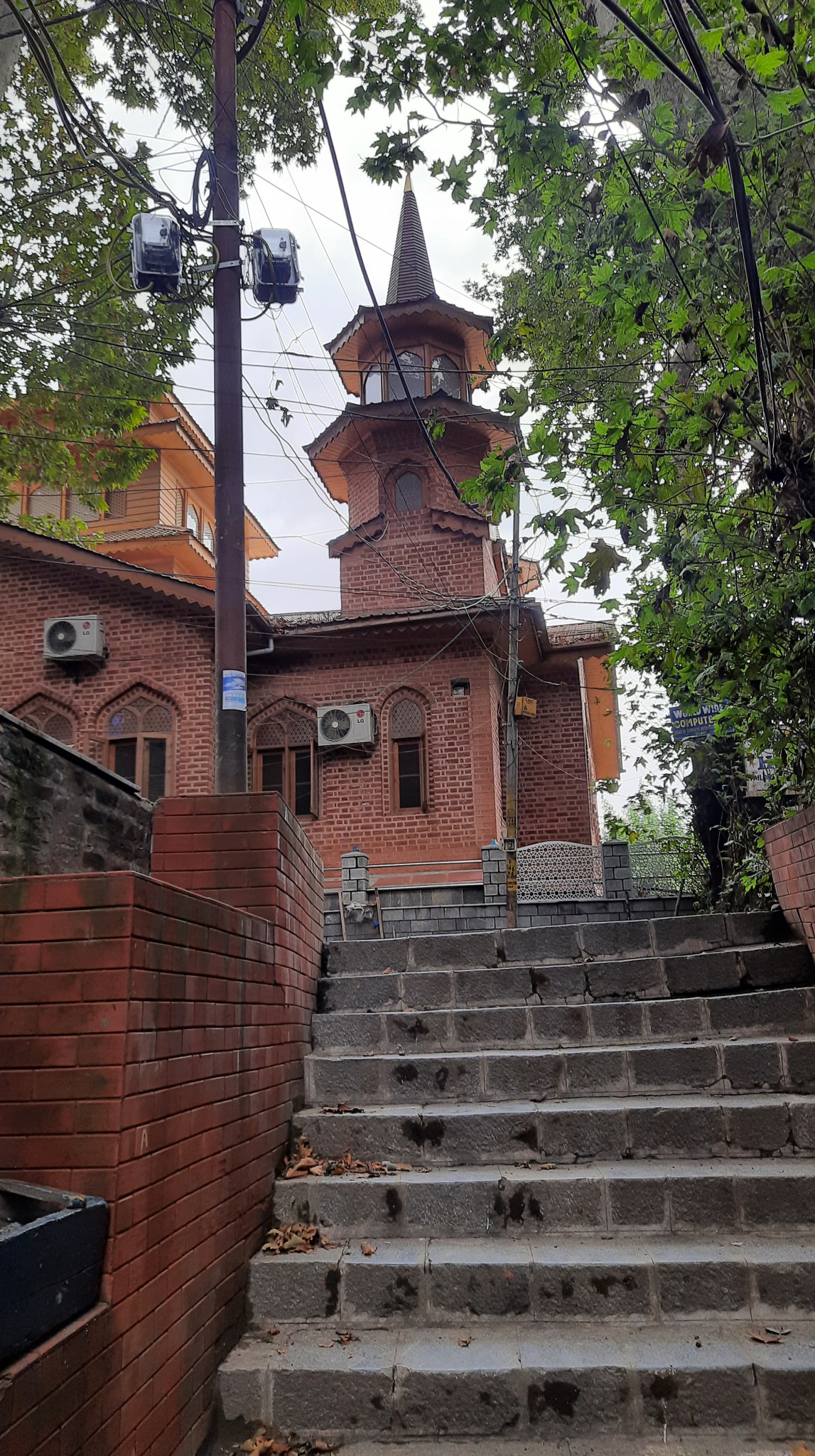 The buildings along the banks of the Jhelum river are all old and still maintain portions of the original architecture of Kashmir. Most of these have been expanded and modified significantly from the original Dhajji Diwar style of construction.